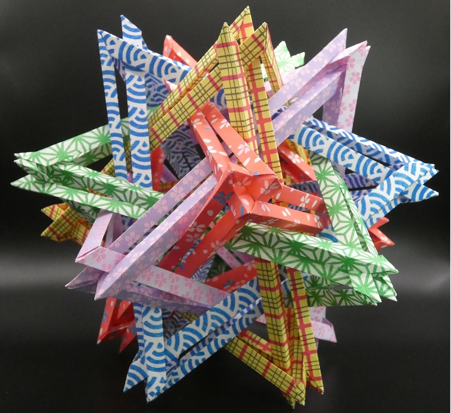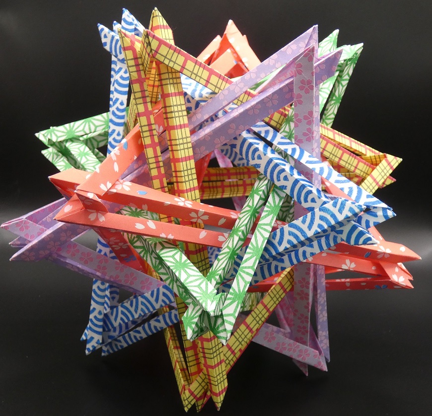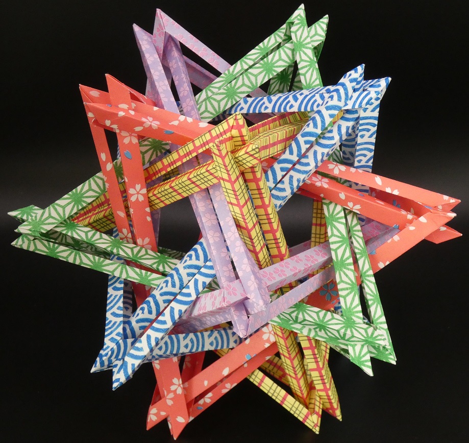 Most of the work involved in this origami isn't actually to fold the paper pieces and the triangle units, but rather to lock each of these units into each other—the weaving.