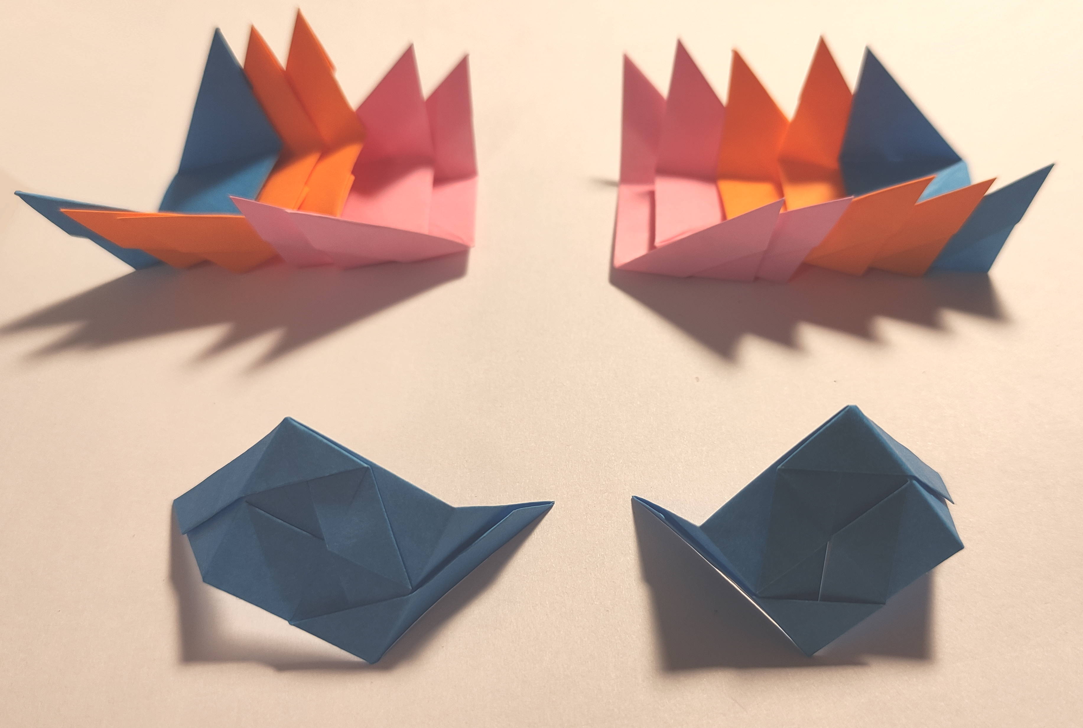 During Organic Chemistry/Stereochemistry class in my first year in college, I made a little experiment aiming to illustrate chirality and stereoisomery using the Japanese Brocade modular origami.